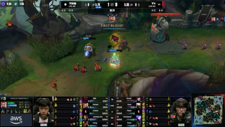 第一局:资源全放!Faker发条摧枯拉朽主宰比赛TES未战先怯T1赢首局