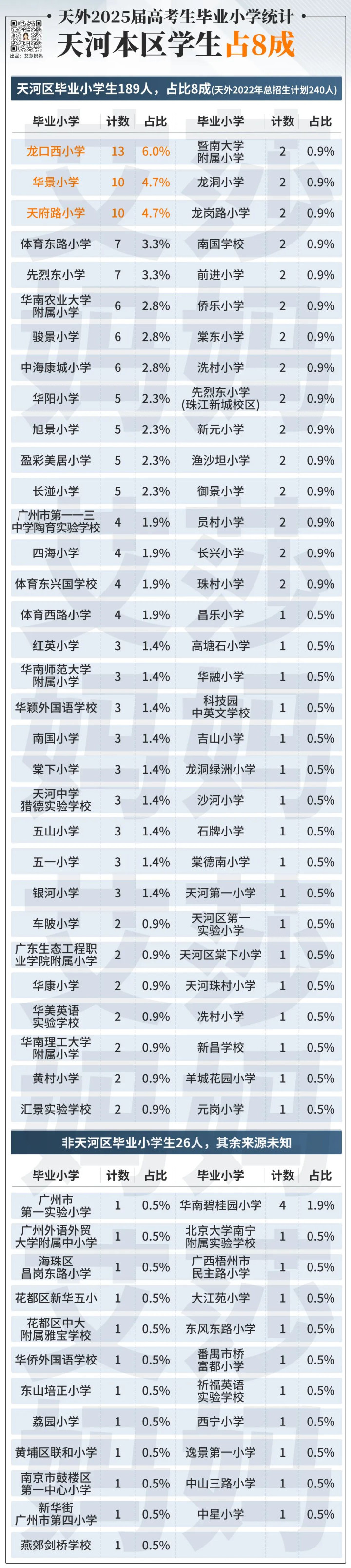 这样看下来,确实也有【英雄不问出处】的成分。当艾莎妈妈把200多个娃的毕业小学统计后发现: