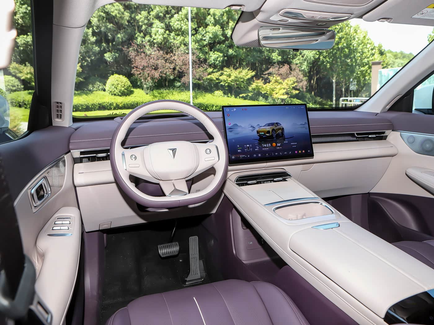 进入车内,内饰空间以豪华游艇设计理念为核心,采用环抱式悬浮中控台与双层结构布局,营造出10.7㎡的软包覆空间。座椅采用100%绒感麂皮材质,主驾支持10向电动调节含2向腰撑,副驾配备8点式按摩系统,打造出舒适性的移动座舱。中控台搭载15.6英寸2.5K窄边框向日葵屏,支持左右15°偏转调节,屏占比高达87.5%的显示效果与Deepal OS 4.0智能系统形成无缝交互。AR-HUD增强现实抬头显示系统创新性地将导航信息与实景道路融合,配合14扬声器音响系统与64色氛围灯组,通过激光镭雕工艺打造的2894个星河律动单元,实现视、听、触觉的多维沉浸体验。2900mm轴距带来900mm后排腿部空间,四六比例放倒后近乎纯平的后备箱容积,仍能满足家庭出行的多样化储物需求。